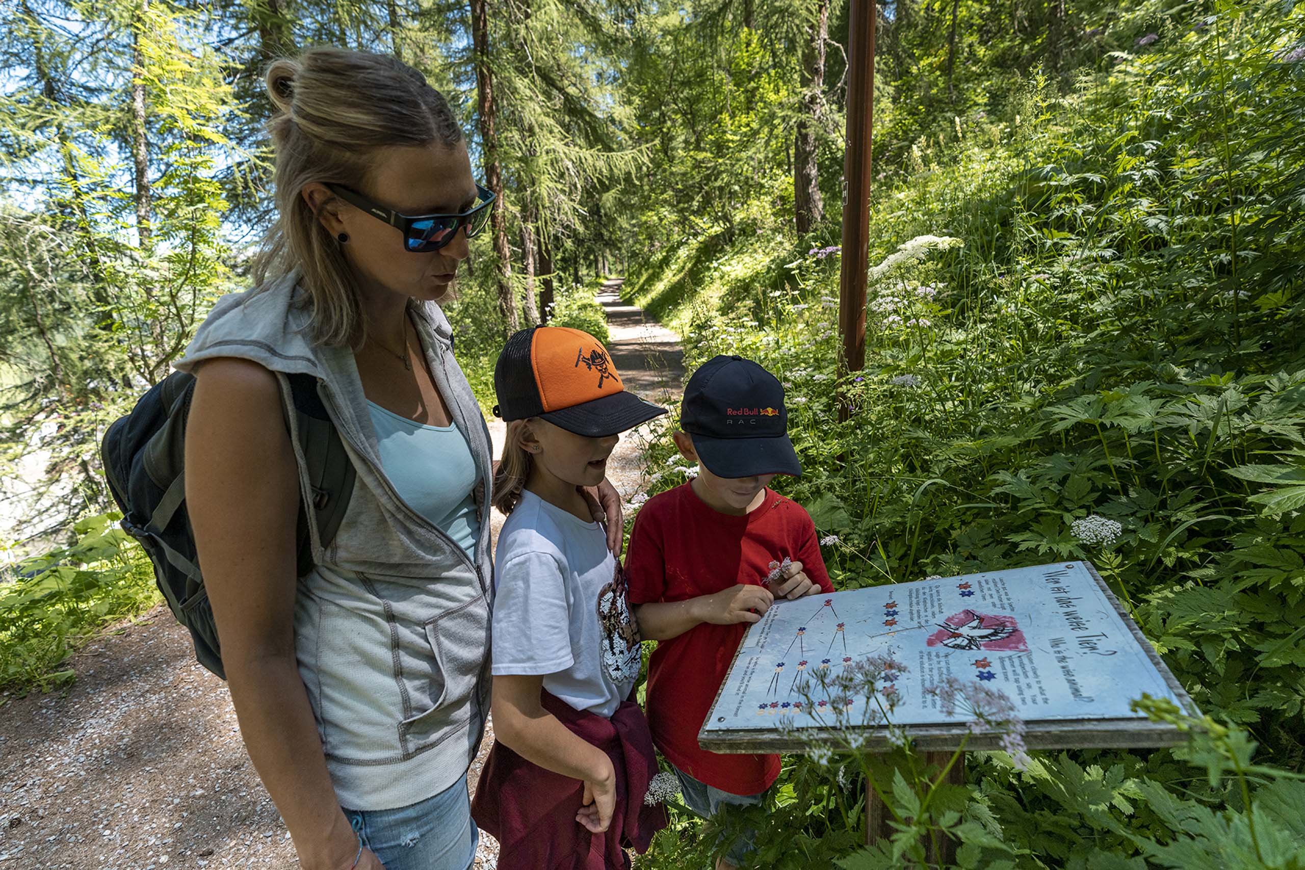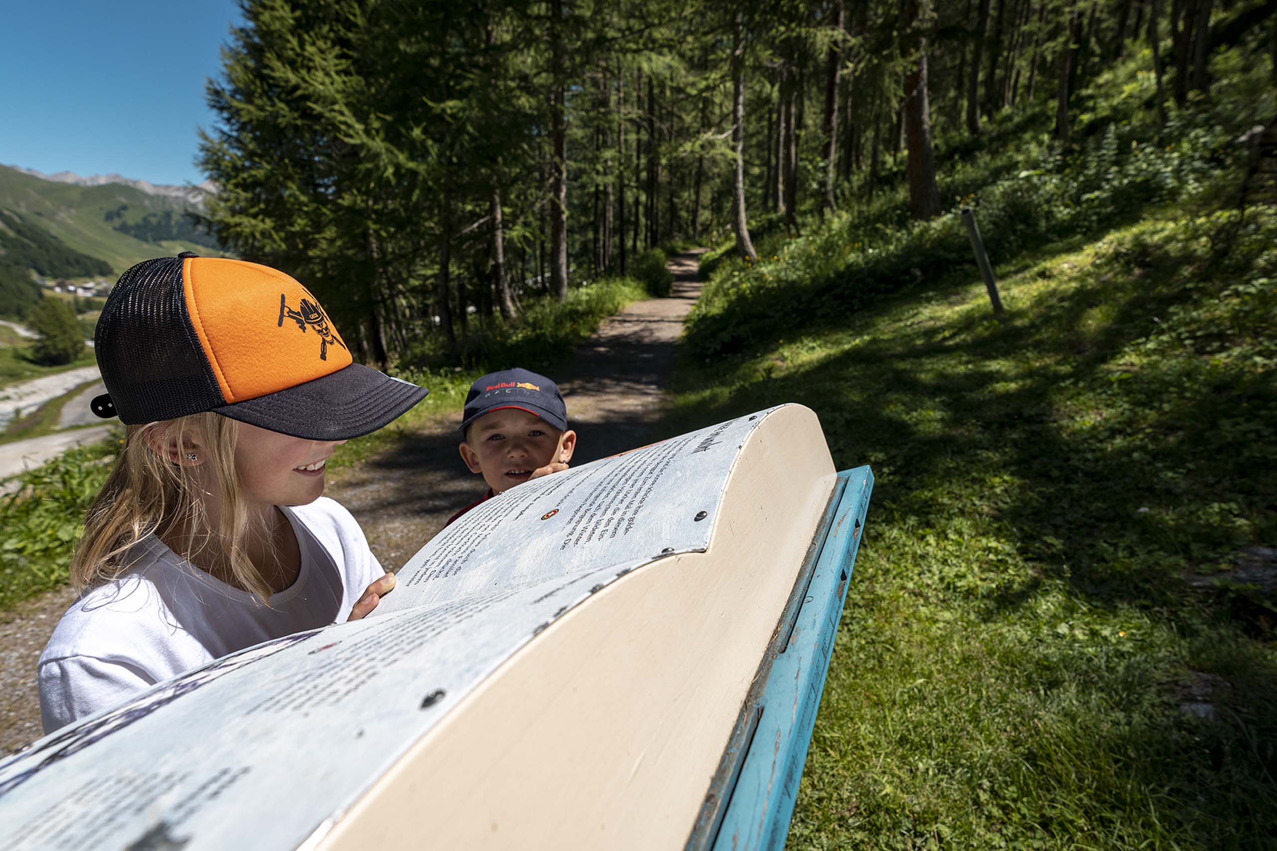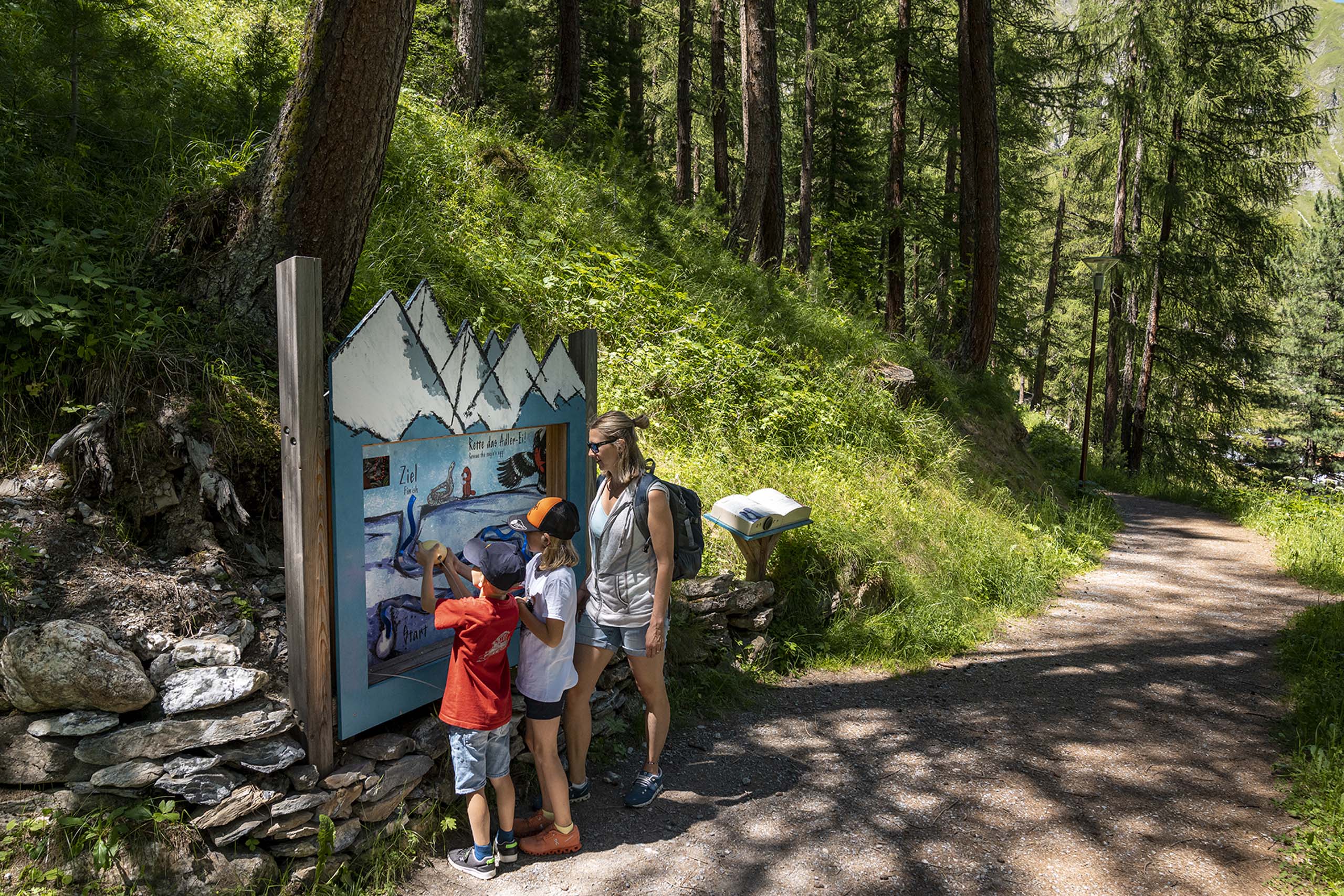 Auf einem interaktiven Erlebnisweg begibt man sich auf die Spuren des Märchenbuchs der Murmeltierkinder von Rudolf Mirer und Silvio Lebrument. Darin machen sich die Murmeltierkinder Murmin und Murmina auf die Suche nach dem rettenden Zauberkräutlein. Bei den zehn Erlebnisstationen hört man jeweils ein Kapitel der Geschichte. Und die gemütliche Wanderung ist nicht nur für Kinder ein Erlebnis, sondern auch für Erwachsene – zum Beispiel am Abend. Dann wird der Märchenweg stimmungsvoll beleuchtet und bietet eine wunderschöne Kulisse. Der Weg ist kinderwagentauglich und sommers wie winters in Samnaun-Dorf begehbar – im Winter ist er sogar besonders schön, weil er sich dann durch eine tief verschneite Landschaft schlängelt.
