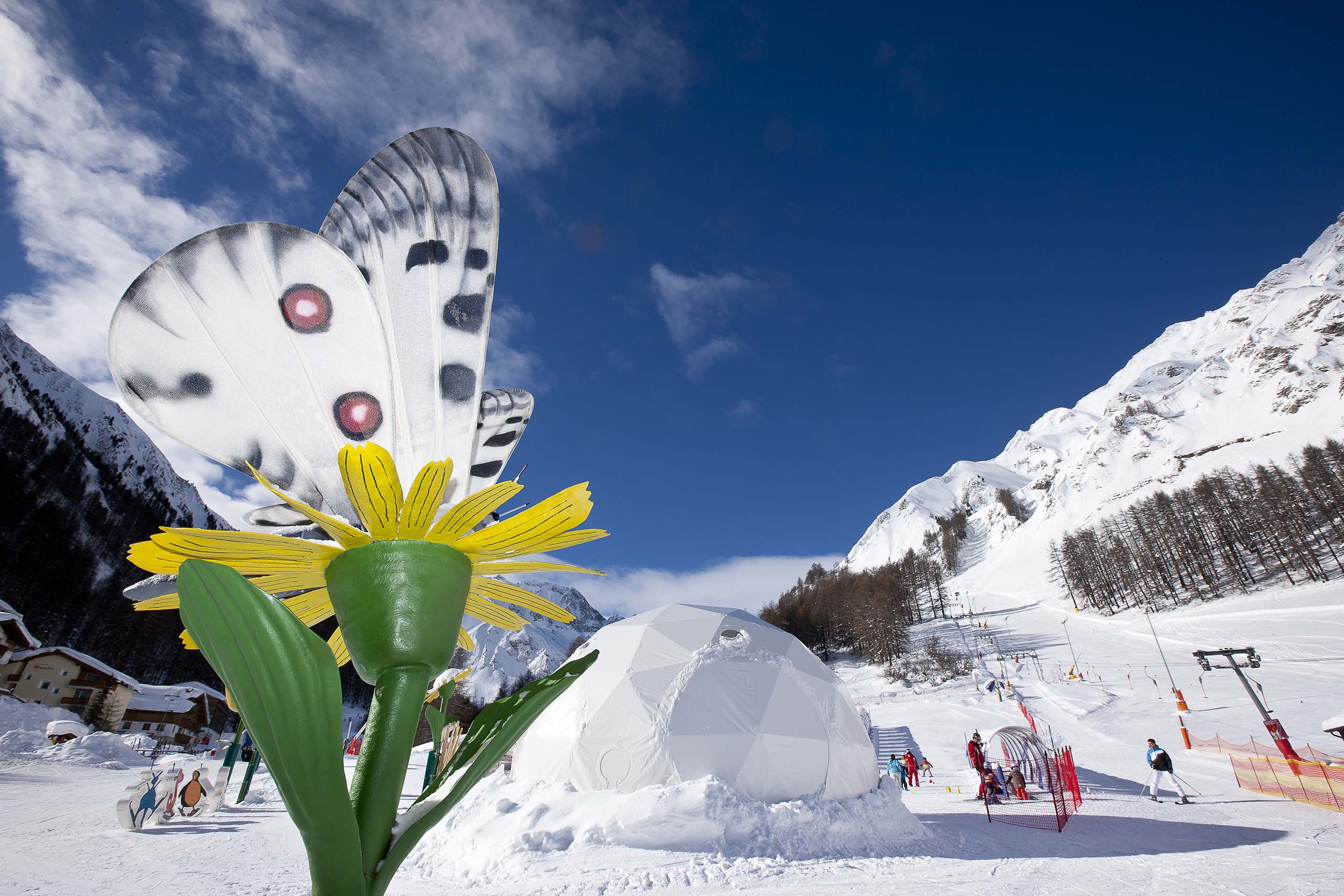Der Winter in Samnaun steht ganz im Zeichen der Schneegaudi und des Pistenzaubers. Während die Kleinsten im Kinderland oder mit der 1. Schweizer Ski- und Snowboardschule in Samnaun ihre ersten Versuche auf Skiern wagen, flitzen die Grösseren schon die wunderbar sonnigen Pisten hinunter. Übrigens werden die Kinder morgens kostenlos von Ihrem Familienhotel in Samnaun abgeholt und nach dem Skikurs wieder zurückgebracht – und Kinder bis zum 10. Geburtstag fahren in Begleitung eines Elternteils kostenlos Ski. Direkt neben dem Dorflift befindet sich das Ski-Kinderland Winterblumentraum. In dieser abgetrennten Kinderzone gibt es Förderbänder, einen Apollo-Falter und ein beheiztes Zauberiglu mit Spielecke. Da ist Skigaudi garantiert!