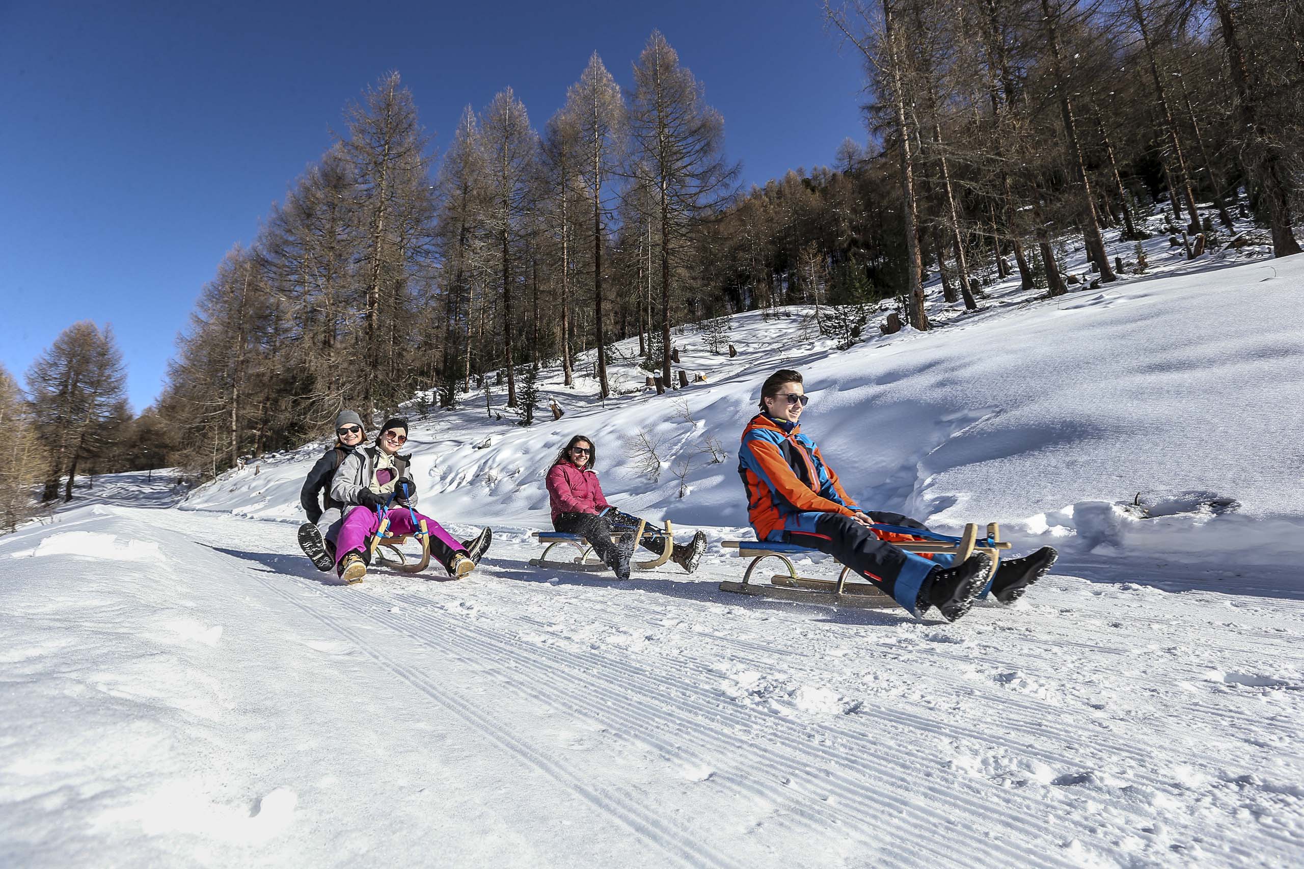 Die Skipisten bedeuten für uns die Welt – aber Samnaun hat im Winter noch so viel mehr zu bieten! Auch Winterwanderungen mit rasanten Talfahrten per Schlitten lassen Kinderherzen höherschlagen. Eisstockschiessen, Schlittschuhlaufen und Hockey eignen sich bestens für spannende Familienmatches auf dem Natureisplatz in Samnaun in unserem Camping-Resort.