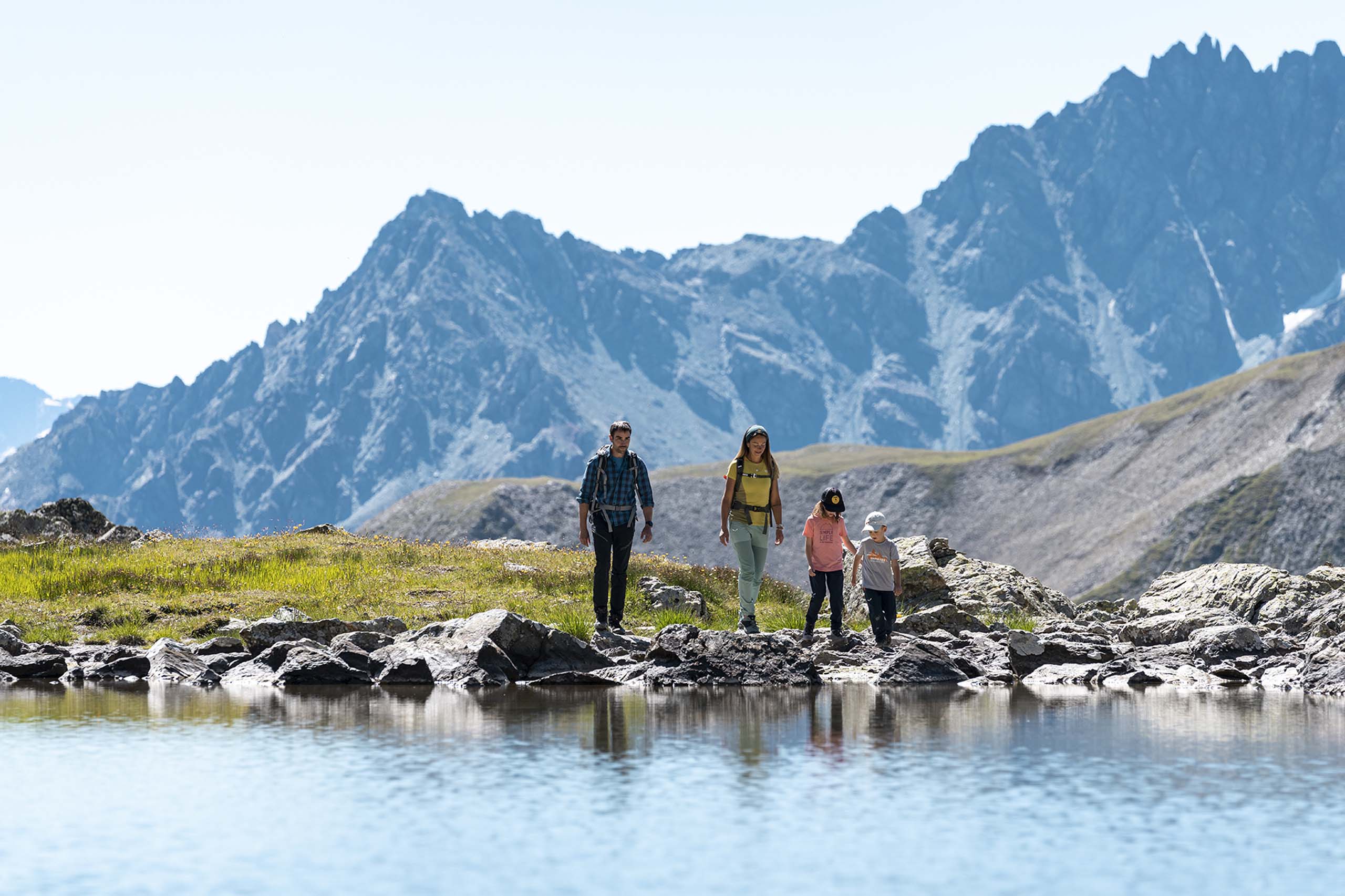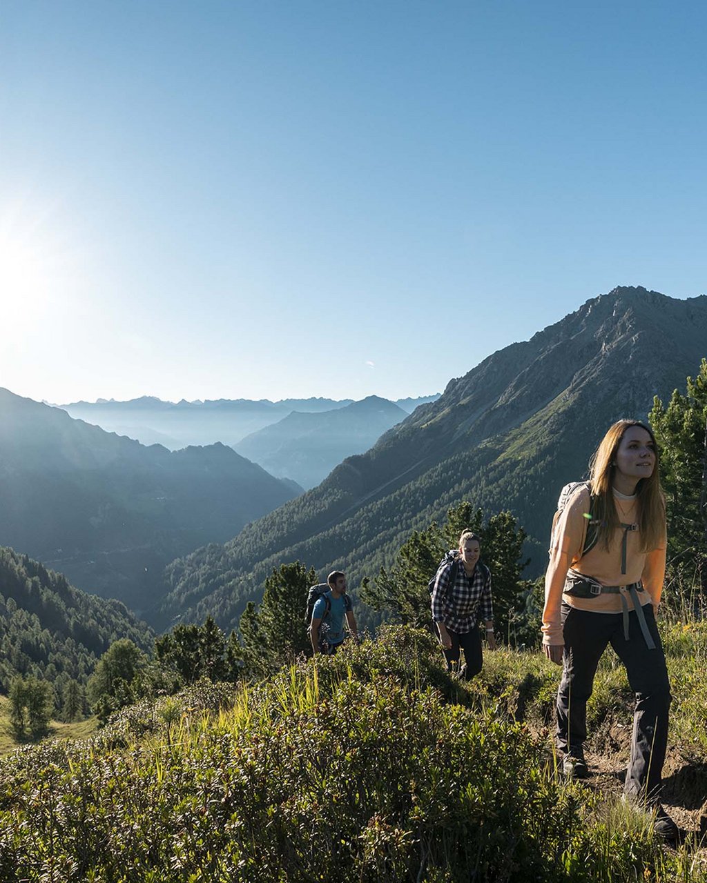 Unendlich wirkende Almwiesen im grünen Hochtal. Grashalme und bunte Alpenblumen, die sich sanft im Wind wiegen. Jahrmillionenalte Felsformationen, die für eine spektakuläre Kulisse sorgen. Und mittendrin: Sie. Diese beeindruckende Landschaft erwartet Sie rund um das Smart Hotel in Samnaun, beim Wandern im Sommer. 200 Kilometer Wanderwege auf über 2 800 Metern Höhe – Herz, was willst du mehr?