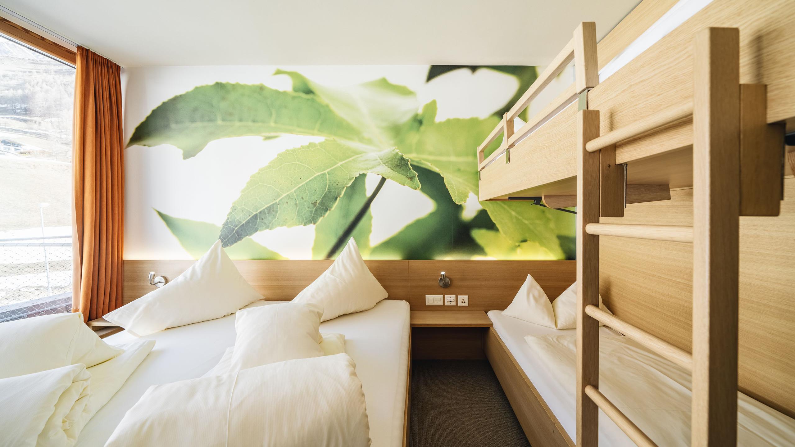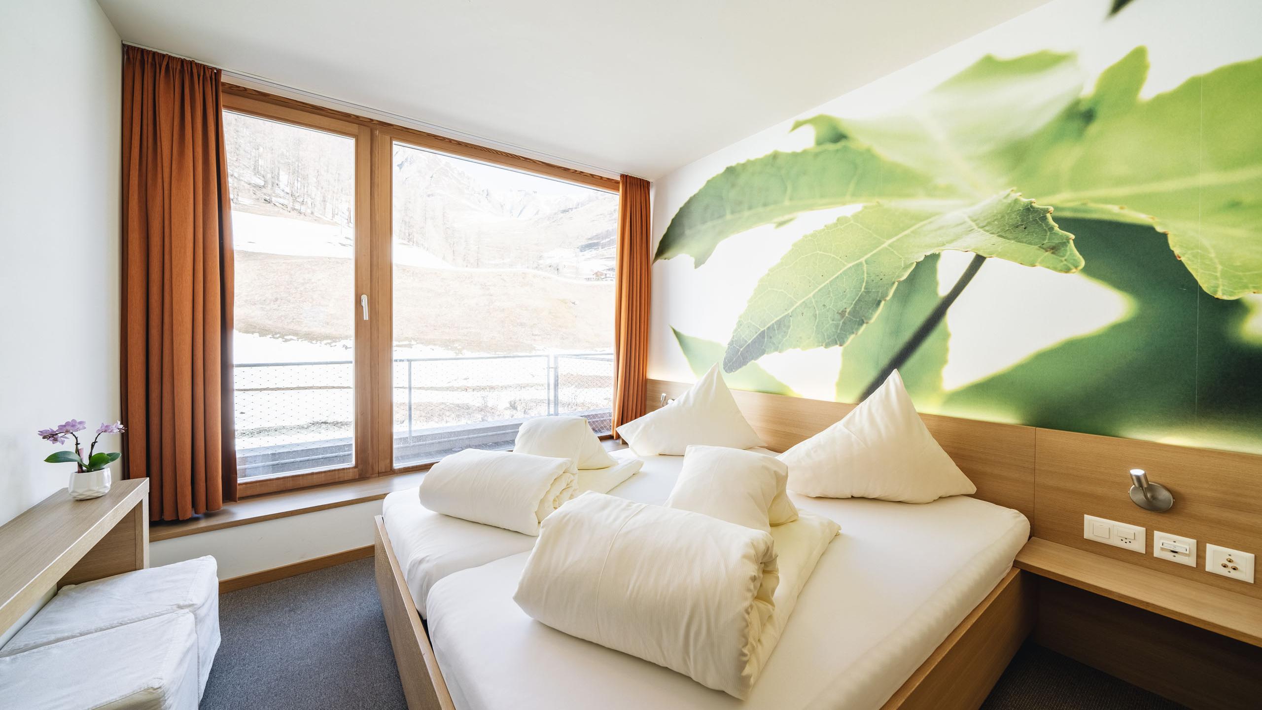 In unseren Panoramazimmern haben Sie die Samnauner Bergwelt direkt vor Augen. Die Wand neben Ihrem grossen Doppelbett ist komplett verglast, so geniessen Sie schon morgens beim Aufwachen den traumhaften Blick. Freuen Sie sich auf ein bequemes 1,80 m breites Doppelbett und ein Stockbett bzw. eine ausziehbare Schlafcouch, auf einen SAT-TV und Flatscreen, einen Kleiderschrank und ein Badezimmer mit Dusche und WC. Darüber hinaus steht Ihnen im ganzen Hotel freies WLAN zur Verfügung.