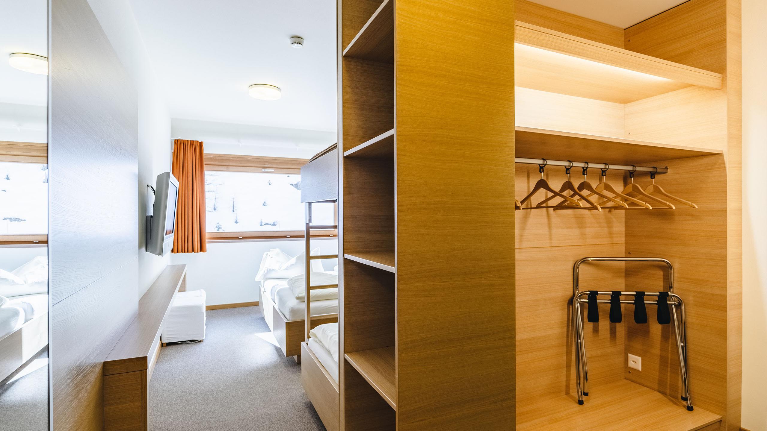 Unsere Podestzimmer sind ideale Familienzimmer. Freuen Sie sich auf ein bequemes 1,80 m breites Doppelbett und ein Stockbett bzw. eine ausziehbare Schlafcouch, auf einen SAT-TV und Flatscreen, einen Kleiderschrank und ein Badezimmer mit Dusche und WC. Darüber hinaus steht Ihnen im ganzen Hotel freies WLAN zur Verfügung.
